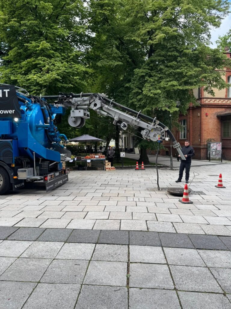 Dziś w Zielonogórskich Wodociągach prowadzimy testy nowoczesnego, w 100% elektrycznego pojazdu do czyszczenia kanalizacji – E-power od FFG Umwelttechnik GmbH & Co. KG, zaprezentowanego przez Pojazdy Komunalne Tymborowscy.