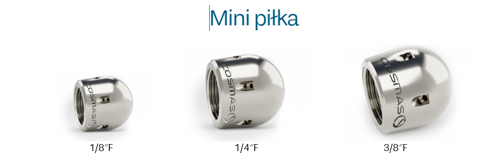 Wysokowydajne dysze Mini Ball wykonane ze stali nierdzewnej z dyszami nadmuchowymi z tyłu.