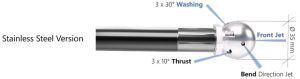 Dysza wykonana ze stali nierdzewnej lub mosiądzu, doskonała do pokonywania zakrętów, utrzymująca kierunek w prawo lub w lewo, w zależności od położenia otworu bocznego.