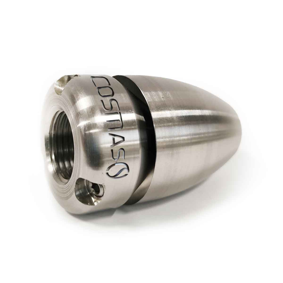 Wysokowydajna dysza ze stali nierdzewnej z tylnymi wkładkami ceramicznymi i wierconymi wkładkami promieniowymi.