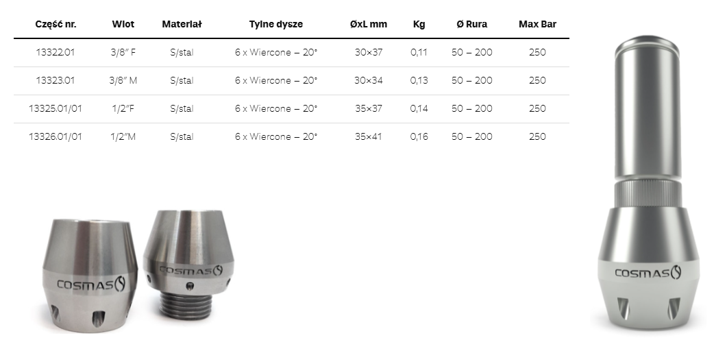 Ta dysza umożliwia przesunięcie zdalnego nadajnika do przodu w rurze.