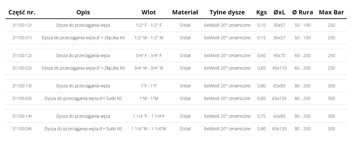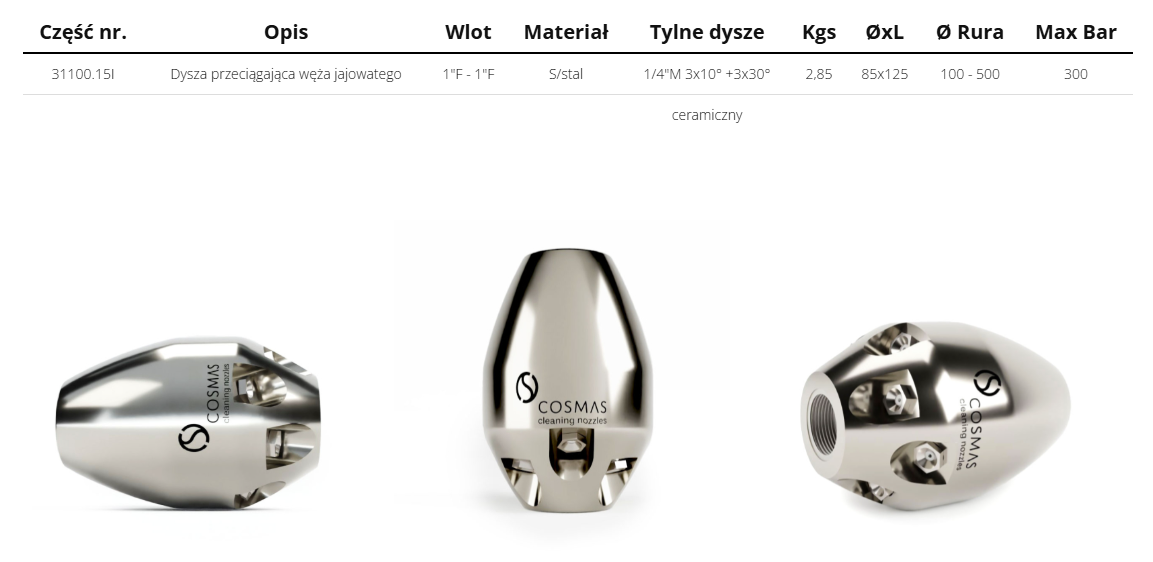 Zastosowanie: Wąż HP przeciągany wewnątrz rur.