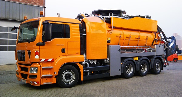 zintegrowany w nadwoziu oraz rura ssąca o specjalnym kształcie umożliwiają odsysanie nieczystości